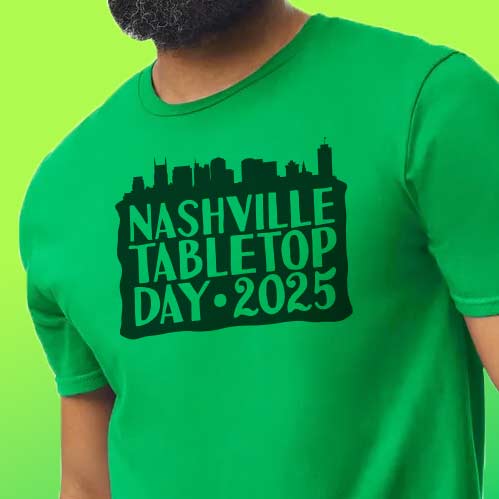 - Admission – Admission to Nashville Tabletop Day is 100% free. We will be selling shirts as an additional ticketed item. Shirts must be purchased in advance, but there may be a small number available for purchase at the event, subject to availability.